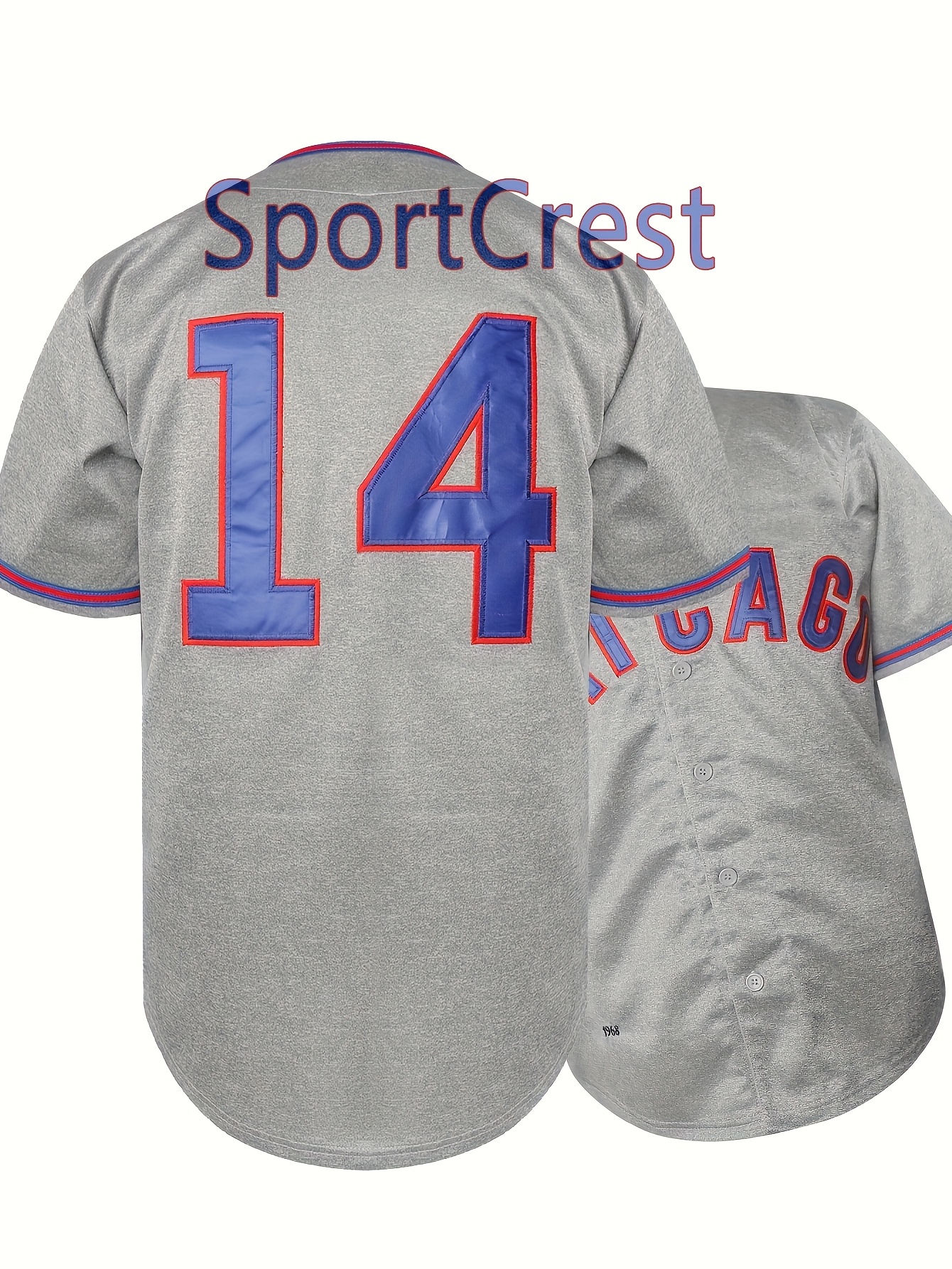 14 Grey Baseball Jersey Stitched Polyester Men'S Retro Baseball Shirt Button Short Sleeved Baseball Top S-3XL Hip Hop Clothes