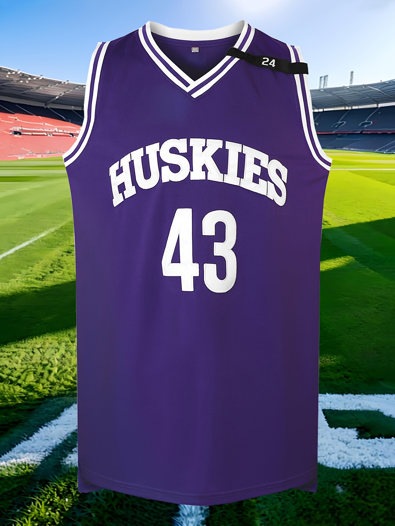 Men's No.43 Purple Embroidered Basketball Shirt - Breathable And Elastic Sleeveless Sportswear for Training, Competitions, And Parties Size S-XXXL