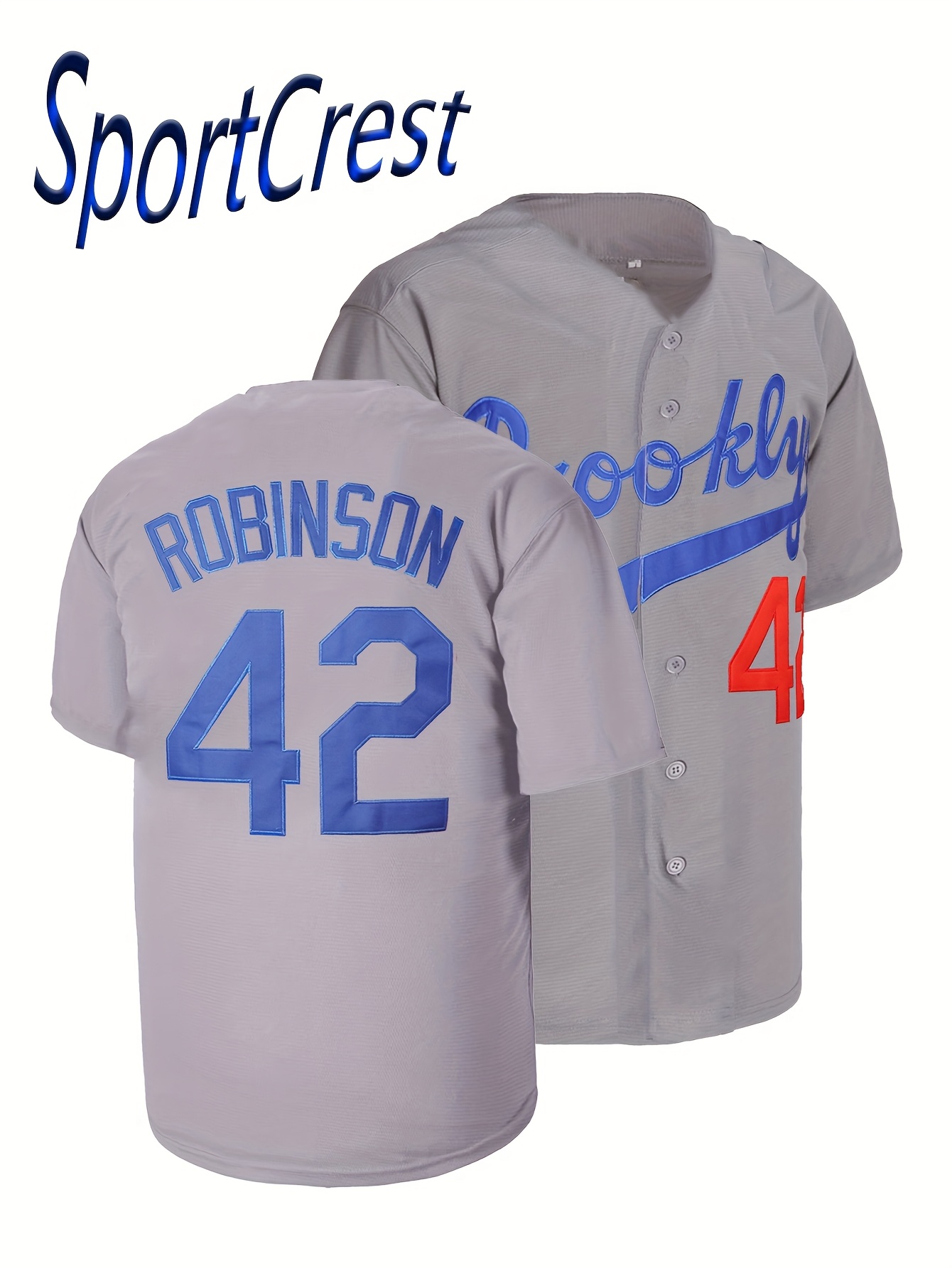 Grey Baseball Jersey Stitched #42 Polyester Men'S Retro Baseball Shirt Button Short Sleeved Baseball Top S-3XL Hip Hop Clothes
