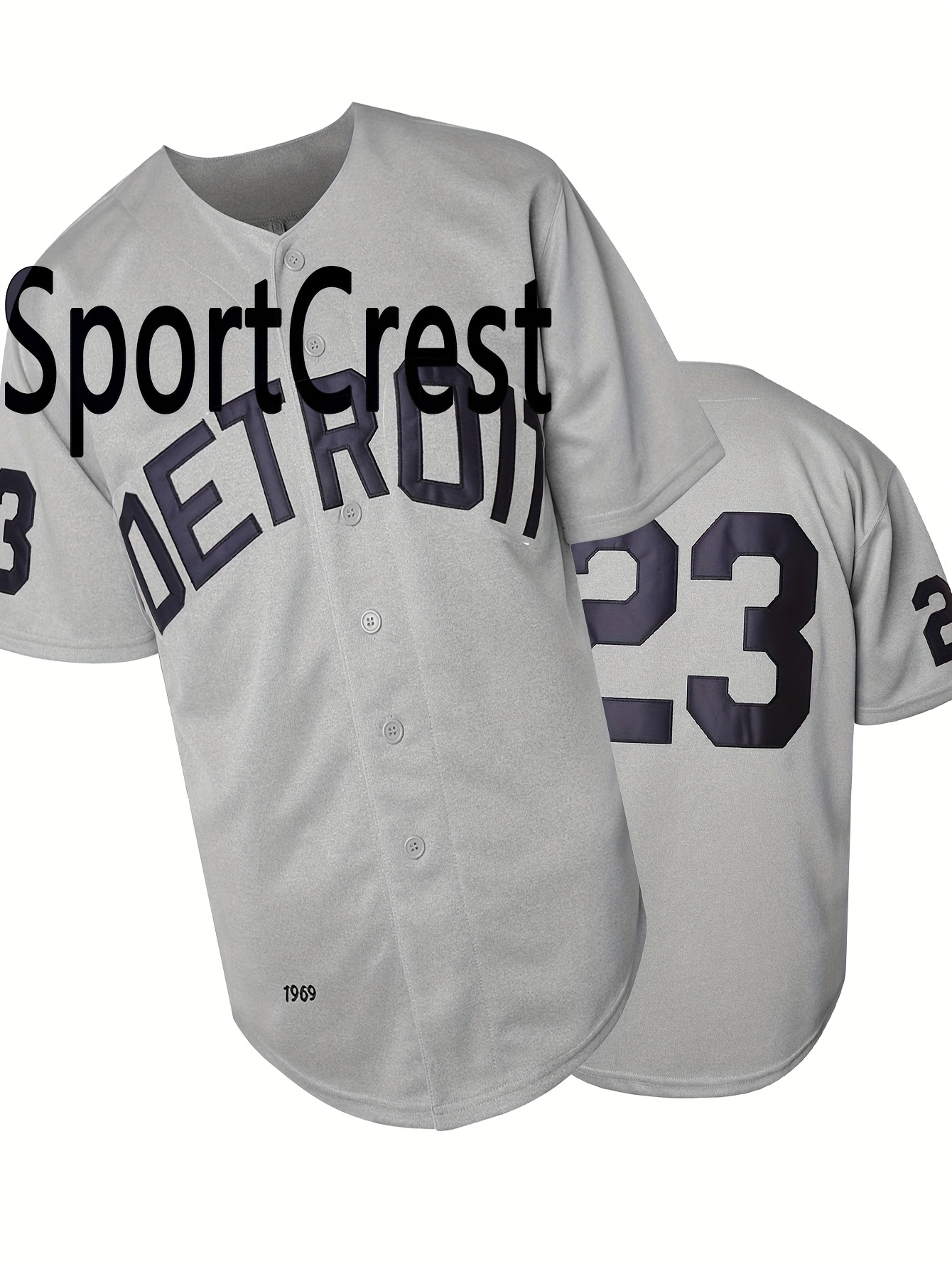 23 Grey Baseball Jersey Stitched Polyester Men'S Retro Baseball Shirt Button Short Sleeved Baseball Top S-3XL Hip Hop Clothes