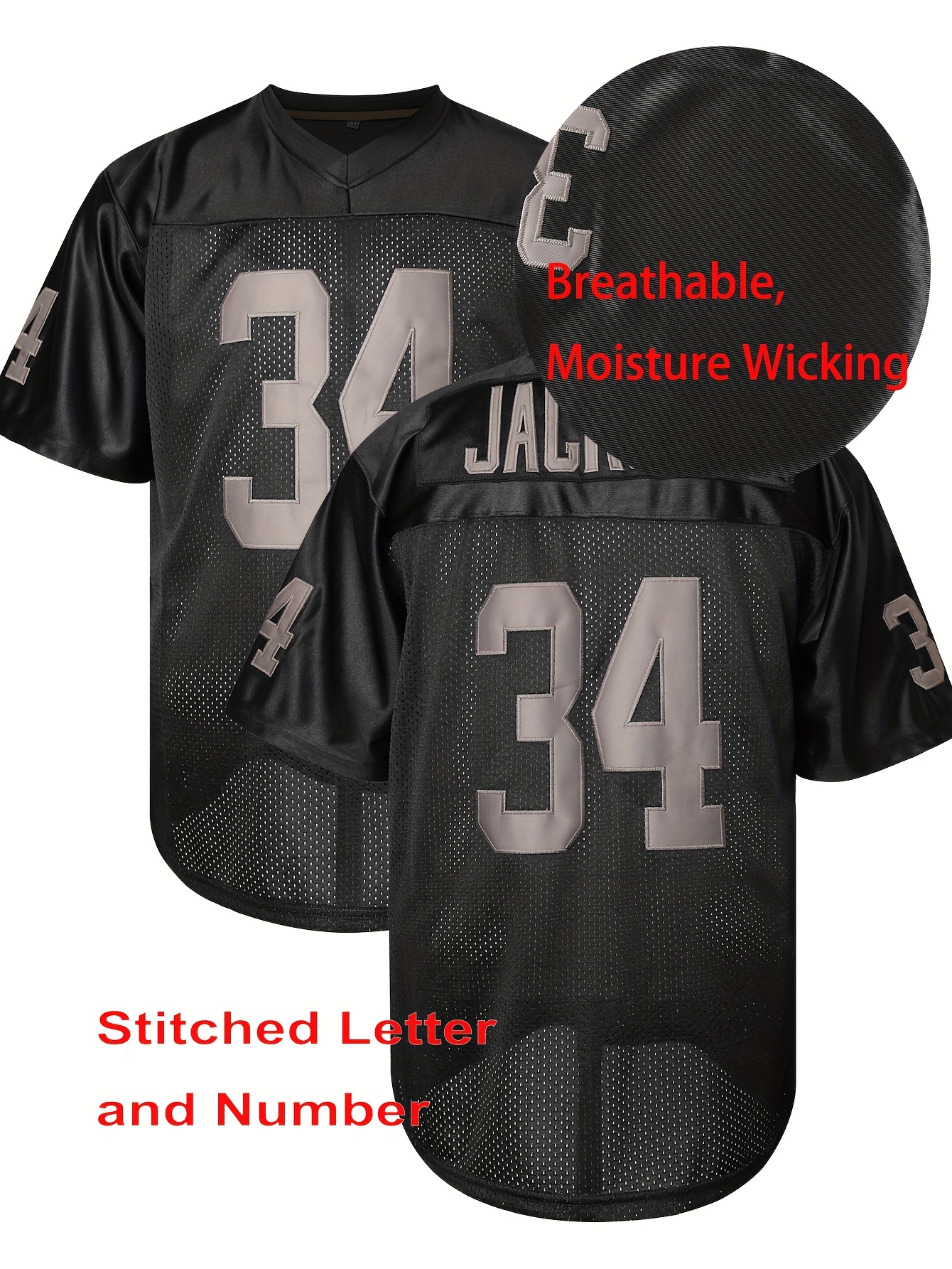 34 Black Breathable Embroidered Football Jersey - Casual V-Neck Sports Shirt For Outdoor Activities & Parties, Sizes S-XXXL
