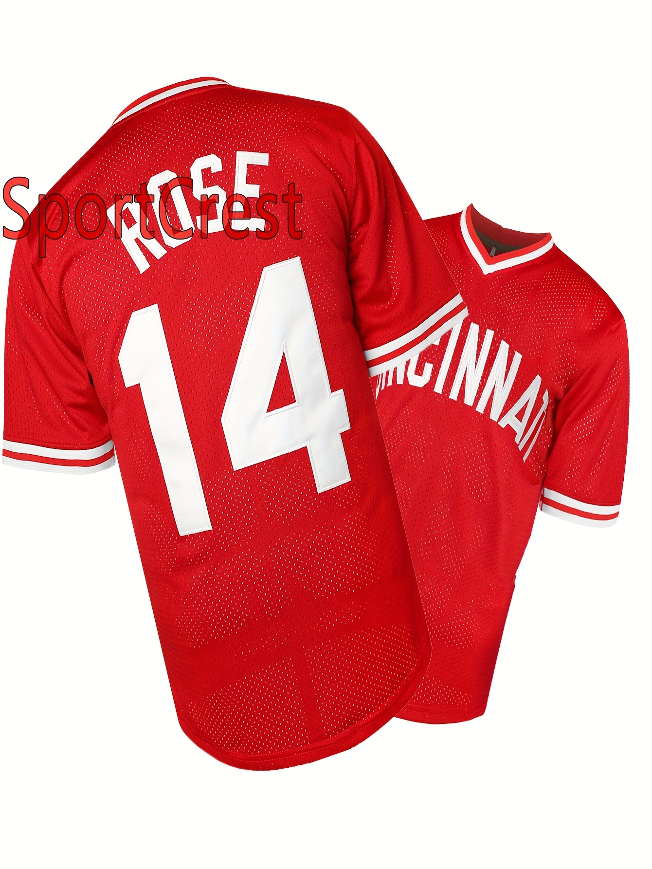 Men's Breathable Baseball Jersey with Embroidered #14 & ROSE Design, 100% Polyester V-Neck Short Sleeve Shirt, Loose Fit for Training, Competition & Casual Wear - All-Season Machine Washable, Best for Christmas