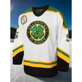 1pc Men'S Shamrocks #3 Ice Hockey Jersey - Embroidered V-Neck Long Sleeve Sports Top, Casual & Team Wear, Knit Polyester, Slight Stretch, Four Seasons, Adult - White with Vintage Color Block Design