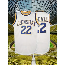 Men's #22 Crenshaw Embroidered Basketball Jersey - Yellow with Blue Trim, V-Neck, Sleeveless Sports Uniform for Streetball, Parties & Casual Wear, Sizes S-XXXL