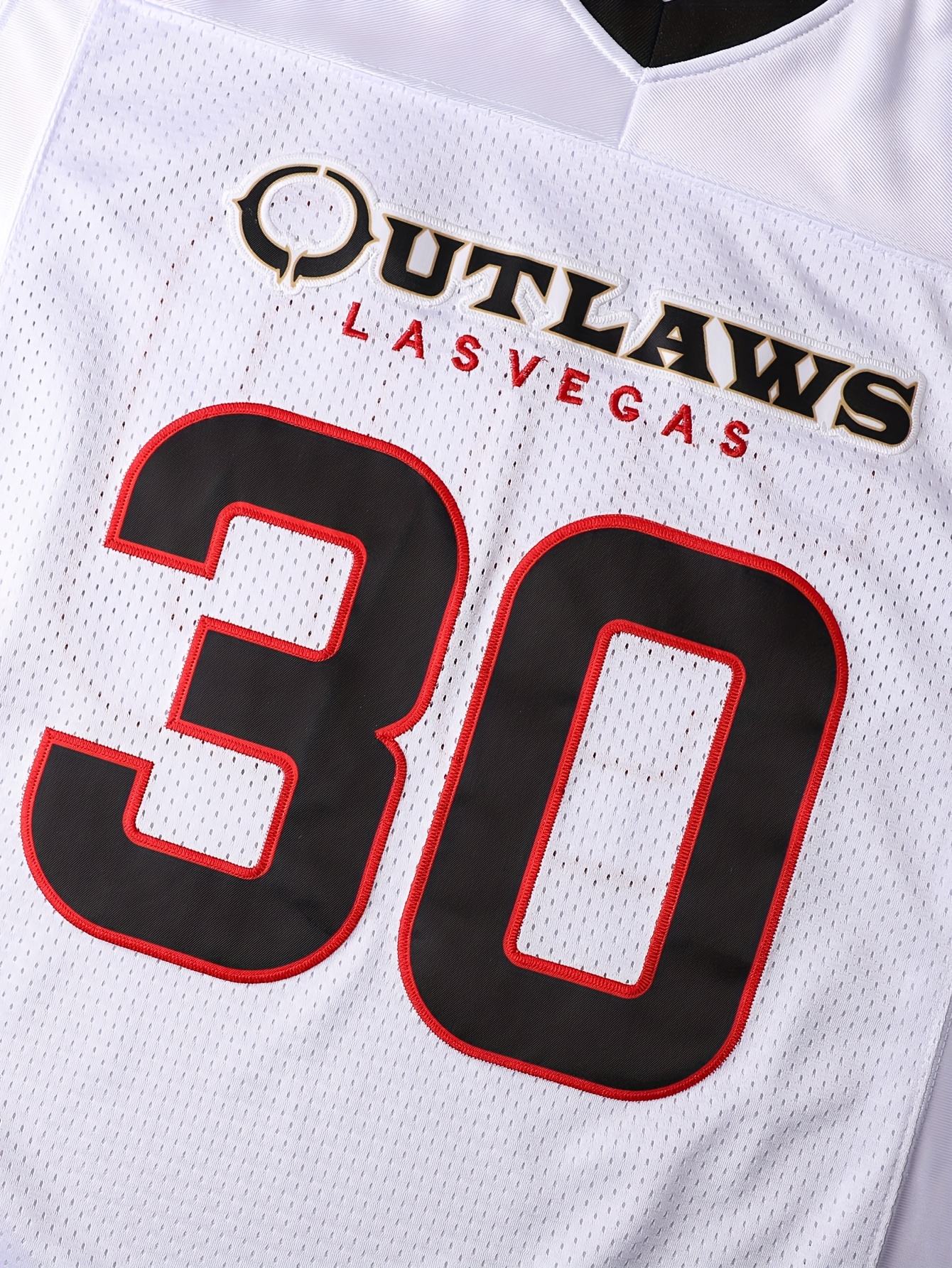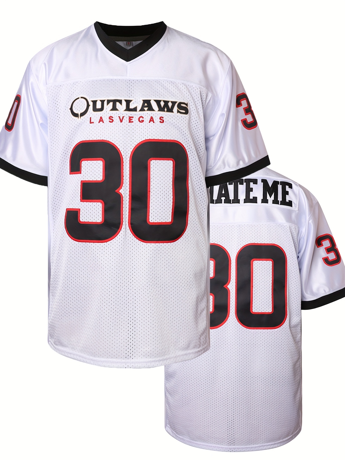 Men's #30 Embroidered Football Jersey - Breathable White Sports Shirt with V-Neck, Striped Sleeves for Outdoor Activities & Parties, Sizes S-XXXL, Outdoor Party Attire|Striped Sports Shirt|Polyester Fiber Jersey, Football Accessories