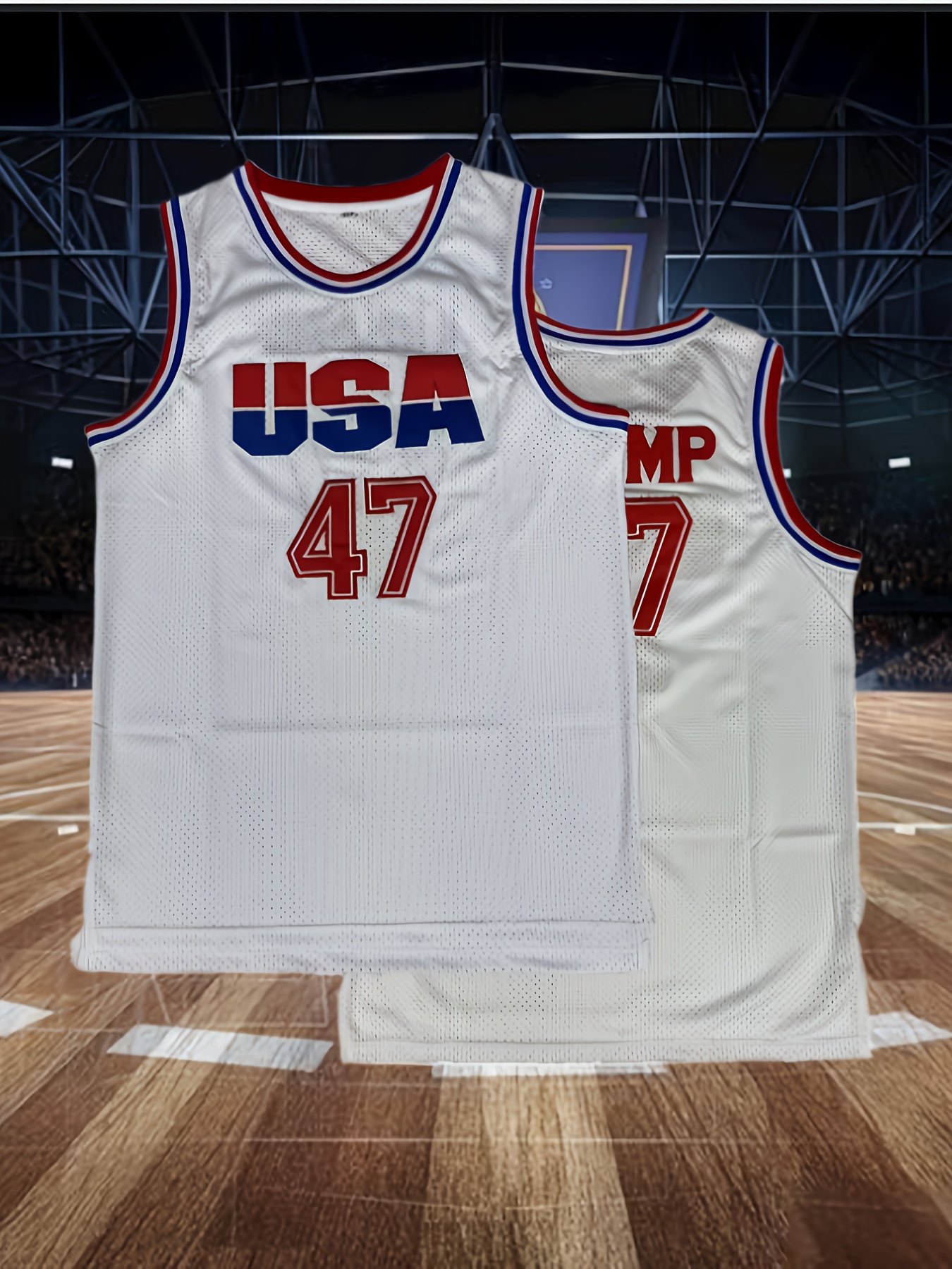 Men's #47 Basketball Jersey - 100% Polyester Knit, Letter & Number, Crew Neck, Sleeveless Sports Top for Training, Casual Wear, Team Sports - Loose Fit, Adult Size, Team Sports Apparel|Patriotic Design| Details
