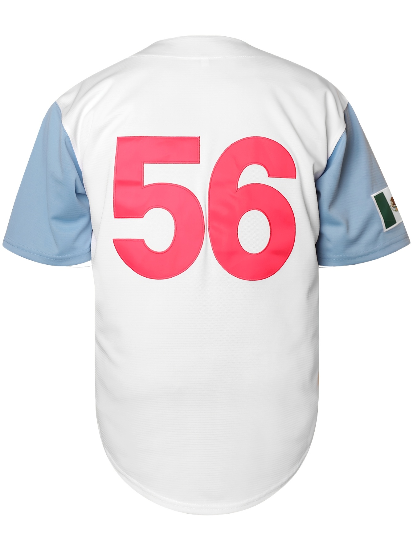 Men's Classic #56 Embroidered Baseball Jersey, Breathable Polyester, V-Neck, Short Sleeve - Ideal for Training & Competition, Machine Washable, White with Blue Accents