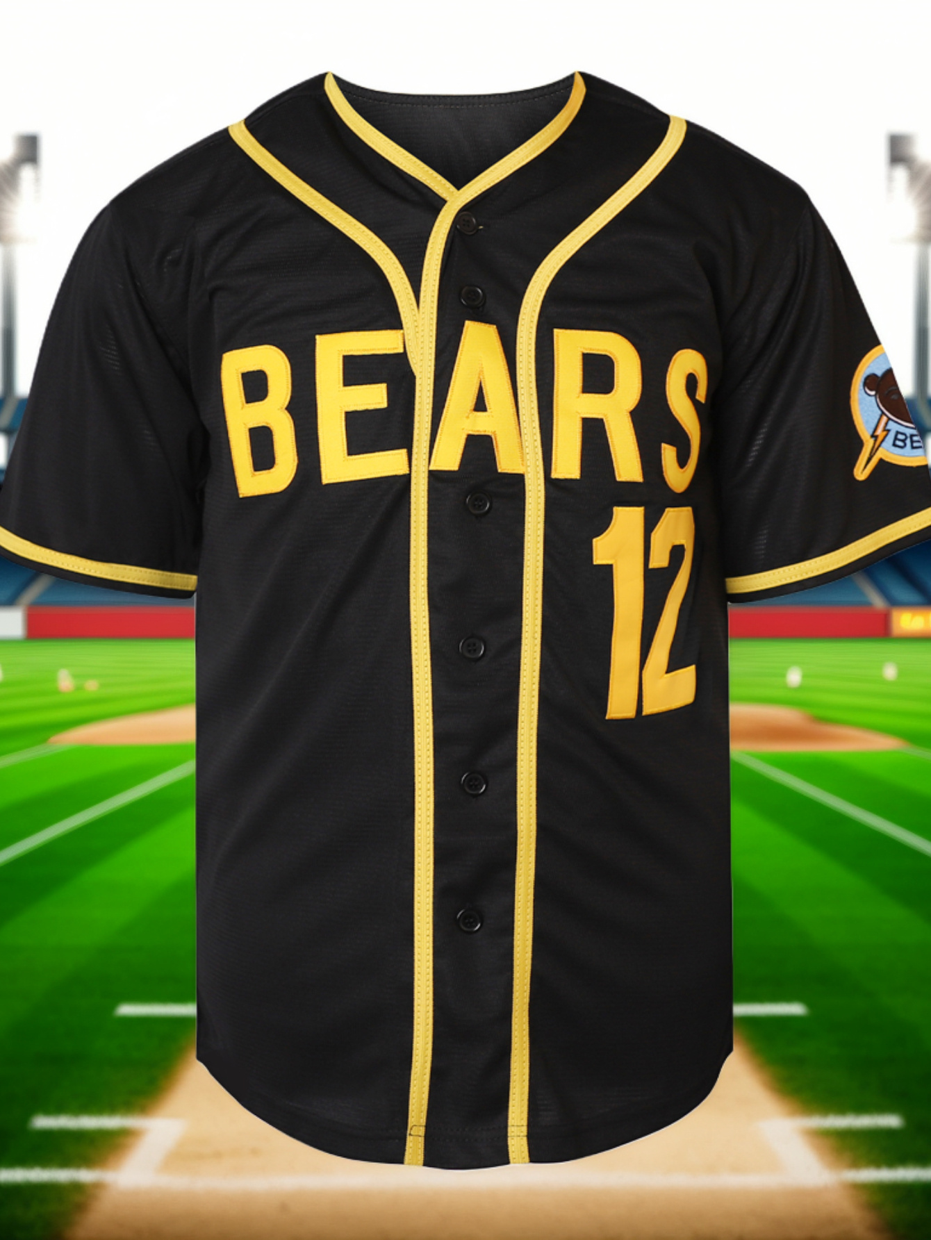 [Sporty] Men's #12 Black Baseball Jersey with Yellow Embroidery - V-Neck, Short Sleeve, Button-Up Shirt, Comfortable Polyester Fabric, Ideal for Training and Games